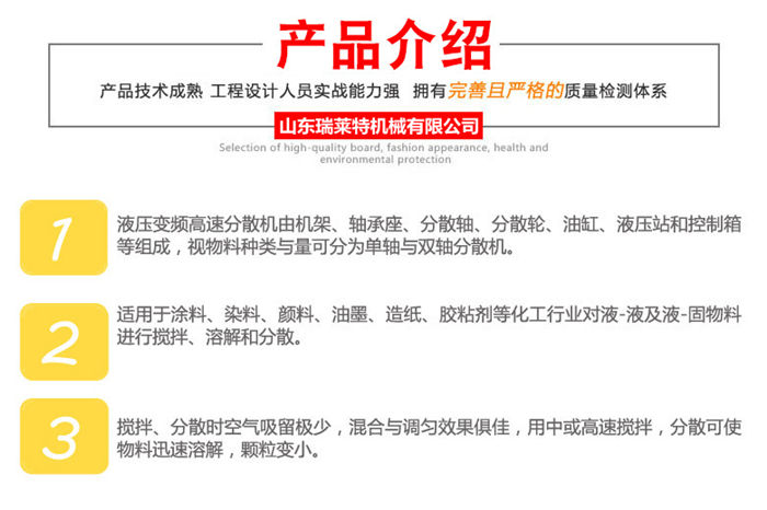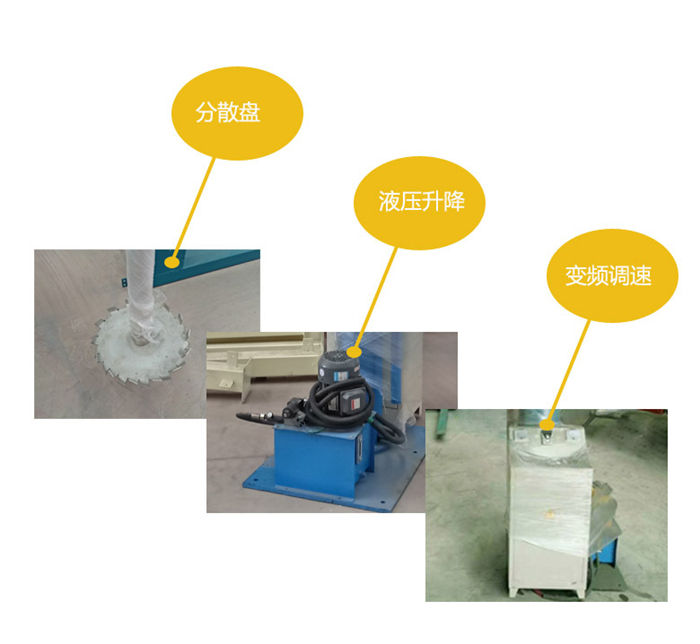 該設備采用變頻防爆分散機,高速分散的用途是把極細微的固體粒子加入液體中,做成懸浮粒子,懸浮粒子的特性是微細粒子不受地心引力而沉淀;機架升降采用液壓傳動,升降平穩(wěn)可靠,機架可以回轉360度,能一機多缸使用。